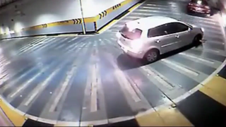 女司机坡道起步溜坡,后面凯迪拉克神助攻!