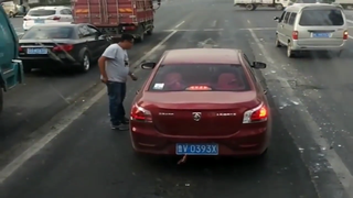 女司机起步连续熄火 ,堵了好多个绿灯,后车大哥等不急了