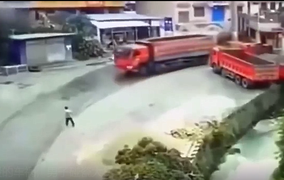 自毁的车祸,男子碰瓷大货车!当场了结自己