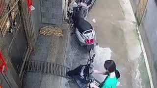 监控下的搞笑一幕,你偷鸡摸狗你家摩托车同意了吗