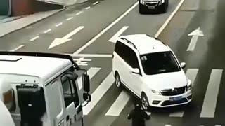 电动车女子见缝插针,阎王爷选择了她,监控记录下生前最后一刻