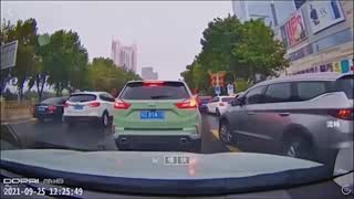 行车记录仪:摩托车男子挡道挑衅,轿车司机路怒症爆发直接撞上去