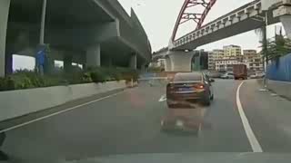 前车当马路是他家的, 直接外道转弯, 造成无辜车祸