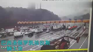 这质量也太差了吧,大货车撞塌收费站,监控拍下全过程