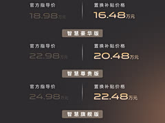广汽昊铂A800今日正式上市,4款配置车型同步登场,官方售价18.98-29.98万元,限时置换补贴后低至16.48-27.48万元。 作为昊铂品牌全新战略旗舰,新车以5130mm车长、3020mm超长轴距打造宽奢驾乘空间,6068mm贯穿式星环灯带搭配华为XPIXEL百万像素智慧投影大灯,颜值与仪式感拉满。环抱式豪华座舱搭载15.6英寸中控屏、12.3英寸全液晶仪表与27英寸W-HUD,全系标配鸿蒙座舱HarmonySpace 5,配合23扬声器ADiGO SOUND音响与主动降噪技术,沉浸式智能出行体验一步到位。 比较有亮点的配置是一键隐私物理按键、悬浮式遮阳帘、以及四座十点机械按摩座椅。后排2+1变形座椅包含在上市权益限时升级中, 动力层面,新车全系搭载1.5T增程系统,标配35.03kWh磷酸铁锂电池组,WLTC纯电续航最高可达178km,更提供272马力后置单电机与598马力三电机两套动力方案,兼顾节能与极致性能。智驾方面,新车首发搭载华为最新896线激光雷达,匹配华为乾崑智驾ADS V4.1系统,顶配车搭载4激光雷达满配版本。