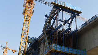 2021年4月7日,中铁二局工人在京唐城际铁路跨河北省三河市燕郊东环路特大桥建设工地施工。 京唐城际铁路起自北京市通州区的城市副中心站,终至河北省唐山市唐山站,线路全长约148.74公里,最高设计时速为350公里,预计2022年通车。作为京津冀地区城际轨道交通网络的重要组成部分,京唐城际将主要承担沿线城际客流,兼顾部分跨线客流,将进一步促进京津冀区域交通一体化。、