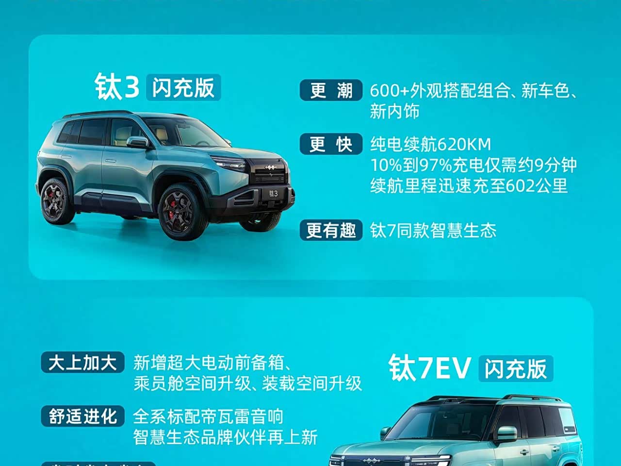 方程豹钛3及钛7纯电闪充版发布,钛3闪充版3月13日专场上市