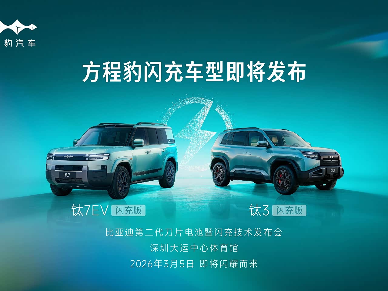 方程豹闪充车型来了,钛3钛7EV闪充版3月5日发布