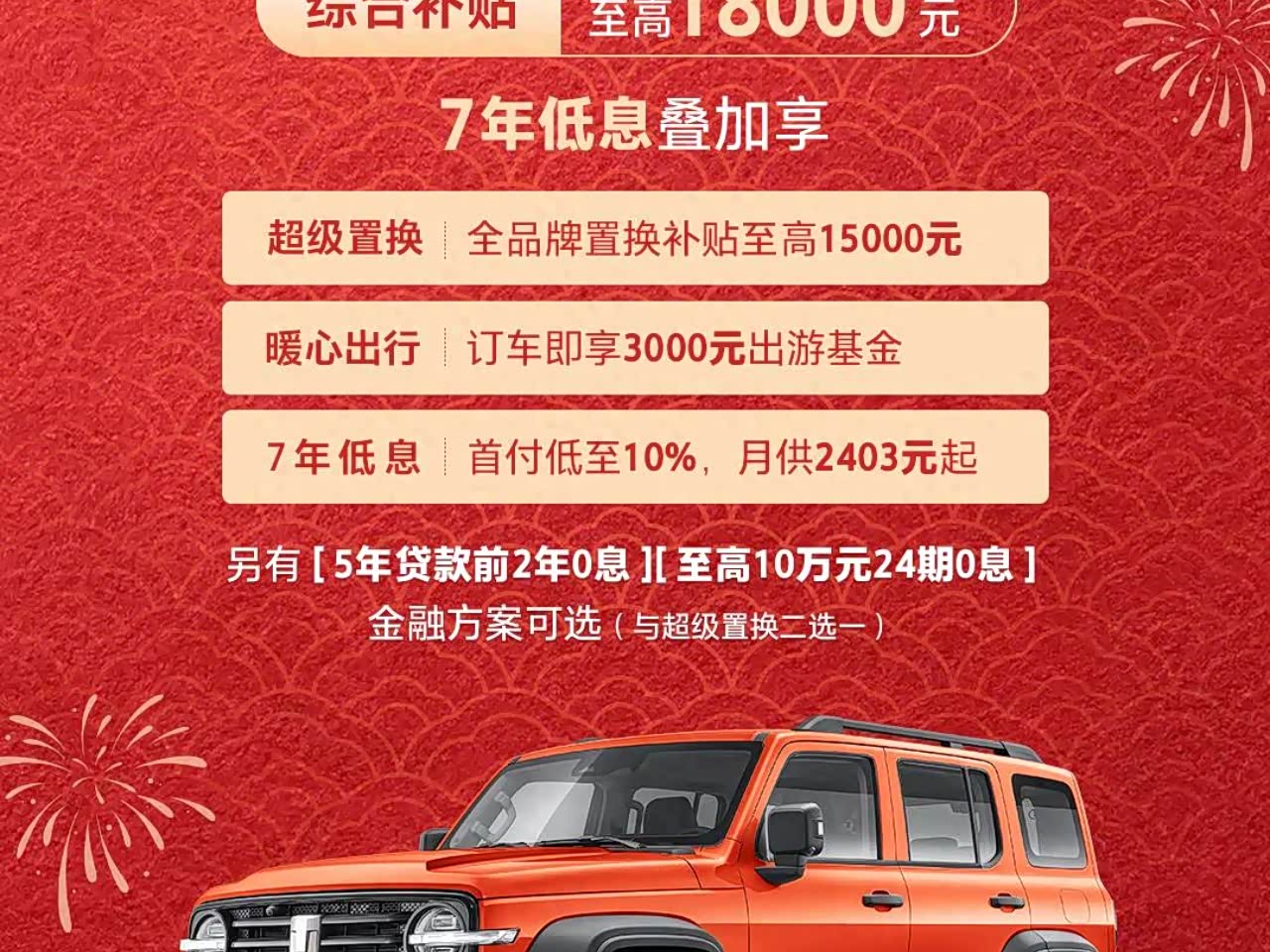 双核福利锁定坦克300,1.8万补贴再叠7年低息轻松开走