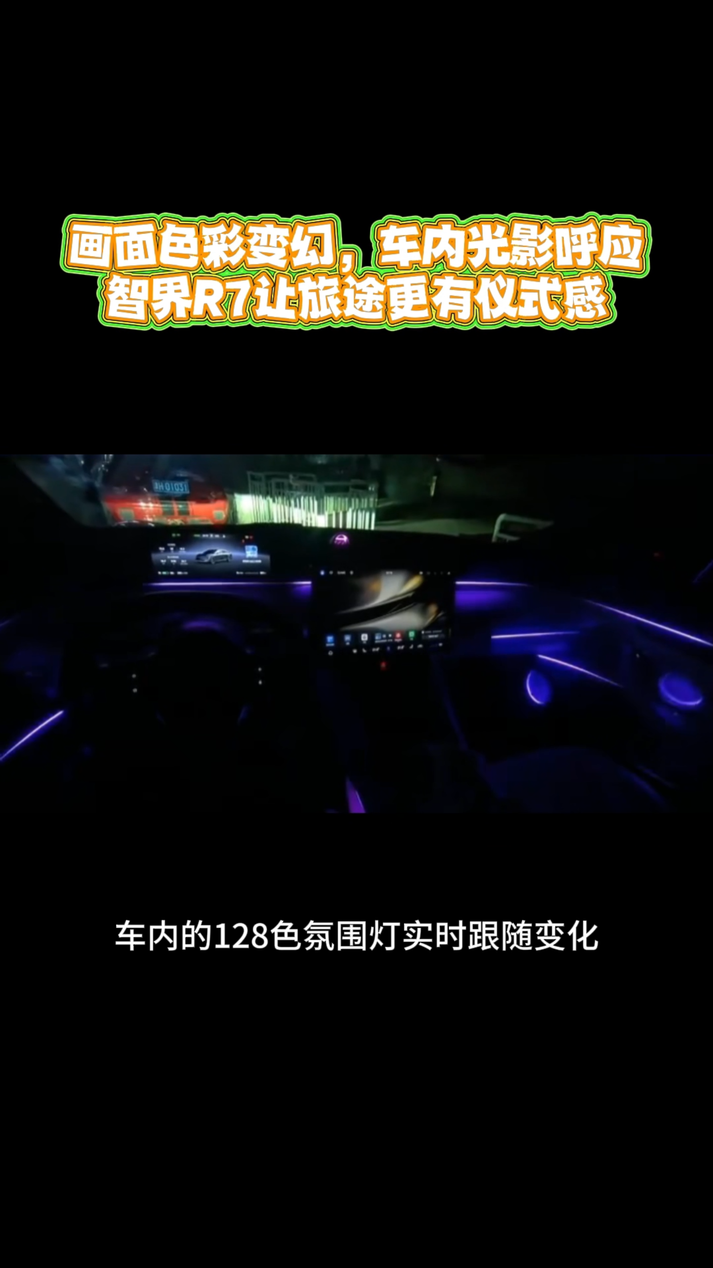 画面色彩变幻,车内光影呼应,智界R7让旅途更有仪式感