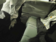 近日,我们获取到一组方程豹豹8的内饰谍照。此前在方程豹之夜和北京车展上,豹8仅展示了其外观,此次我们可以提前一睹其内饰的设计。 具体来看,虽然车内有大量的覆盖物,用来遮挡细节,不过从暴露出来的部分,也能够看出来整体的设计风格,延续了方程豹家族一贯的设计理念。中控台比较整洁,配备了一块悬浮式的中控大屏,方向盘为内外双色设计,预计表层为真皮。 A柱覆盖着显眼的翻毛皮材质,而麂皮材质顶棚很可能会成为标配,提升了内饰的质感。顶棚拉手和后排扶手同样采用了类似皮质的包裹,这些细节使得豹8的内饰相较于豹5在用料上更显高级。 动力方面,豹8基于比亚迪DMO超级混动越野平台打造,将搭载由2.0T高功率发动机与前后双电机组成的动力系统,其中2.0T发动机最大功率200千瓦,前后电机最大功率分别为200千瓦和300千瓦。