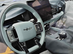 日前,我们从互联网获取到一组方程豹豹8的内饰谍照。 从谍照中看,豹8延续着方程豹家族的内饰设计风格,像平底的四辐式方向盘、全液晶仪表盘和悬浮式中控大屏等。不过用料有显著提升,例如在车内A柱有仿毛皮材质,甚至车顶上的麂皮材质在以后新车上会是标配。其次车顶上的扶手以及中控扶手都有类似皮质包裹,档次感提升明显。 外观方面,与豹8与豹5一样,采用硬派风格造型,前格栅造型较为复杂,增加了黑色烤漆护板。车顶方面则配备了激光雷达,前翼子板处还配有侧后向摄像头,将配备天神之眼高阶智能驾驶辅助系统,未来会支持城市与高速NOA功能。 动力方面,豹8基于比亚迪DMO超级混动越野平台打造,将搭载由2.0T高功率发动机与前后双电机组成的动力系统,其中2.0T发动机最大功率200千瓦,前后电机最大功率分别为200千瓦和300千瓦。