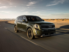 近日,我们从相关渠道获得了新款起亚Telluride官图,该车将于年内上市销售,主打北美地区的中大型SUV市场,起售价3.279万美元(约21万人民币),新车目前只发布了外观官图,最大的变化是换装了全新“KIA”车标。起亚Telluride外观采用大嘴式网状进气格栅,两侧矩形前大灯造型犀利并采用熏黑设计,配以外围环形LED日间行车灯及转向灯,整体辨识度较高;新车保险杠设计具有层次感,两侧银色进气口的应用彰显运动感。此外,这款SUV发动机舱盖线条硬气十足,底部银色护板配以上方四个LED雾灯,更显精致。动力系统方面,预计新款起亚Telluride不会有什么变化,将继续搭载3.8L自然吸气V6发动机,功率286马力,扭矩355牛·米,匹配8挡自动变速箱,并且还将拥有搭载四驱系统。