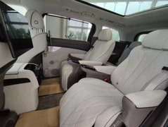 腾势D9到店,前脸大嘴式进气格栅气势磅礴,内部辅以龙鳞一般的镀铬饰件,并与两侧矩阵式大灯融为一体,带来了强烈的压迫感。同时还配有獠牙式的日行灯带,不仅提升了科技气息,再搭配夸张的进气口造型,又营造出战斗氛围。庞大的车身尺寸配合方正硬朗的车身轮廓,显得气势非凡。象征高端的双侧滑门自然不会缺席,而车窗以及侧裙处的镀铬点缀,配合银色密幅式轮毂,又提升了豪华气息。多层次的尾部造型摆脱臃肿,大尺寸扰流板继续强调运动气质,并采用时下流行的贯穿式尾灯,点亮后呈现箭羽样式,很有高级感。的内饰将延续王朝系列的风格,平直的中控台造型简约大气,全液晶仪表与钢琴烤漆面板融为一体,并换装水晶材质挡把,座椅也更显豪华,再搭配大面积木纹饰板、HUD抬头显示、氛围灯,彰显更高端的定位,此外还搭载了腾势Link超智能交互以及Pilot L2+级智能驾驶辅助系统。