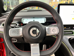 Smart精灵#1到店,外观设计,则是来自于奔驰。从图中可以看出,即便没有传统的进气格栅设定,但前包围以熏黑宽大散热槽为主体的三段式进气结构,配上贯穿式LED灯带,倒也让其在展示出纯电动产品应有的科幻感的同时,还让其具备一定程度的运动氛围。车身侧面部分,凹凸有致的线条排布,使其侧颜具备不俗的光影视觉效果。而双拼色调的处理,配上隐藏式门把手和无框车门,则充分显露Smart旗下产品固有的时尚格调。至于新车的尾部,相对简约的布局中,加入了贯穿式尾灯和分段式防护板,用以呼应前脸的科技感并透露些许硬派色泽。内饰部分,毕竟是出自奔驰设计,其内饰格调倒是很有奔驰产品的极简风。新车采用了T字型布局,并在其中加入了长条形全液晶仪表和超大尺寸的悬浮式中控屏。虽然没有太多抢眼的地方,但并不意味其内饰没有科技感。