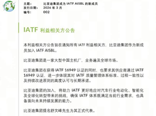 比亚迪获国际权威组织认可,受邀加入IATF国际汽车工作组
