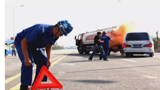 应急处置“三要求” 1.出现车辆故障、事故、货物漏撒等紧急情况时,要根据货物的爆炸、易燃、腐蚀、剧毒、放射等不同性质,按照相应的应急处置预案和操作规程妥善处置。 2.车辆妨碍交通又难以移动的,要按规定开启危险警报灯,在车后50至100米处设置警告标志,高速公路在150米外设置警告标志,夜间要同时打开示廓灯和后位灯。 3.个人无法处置时,要将车辆停靠在尽可能空旷、远离人群、水源的地方,及时报警,报警时应详细说明危险货物名称、形状、数量和泄漏情况,便于相关部门第一时间有效处置。 提醒:交通安全关乎你我,每个人的参与都至关重要,从自身做起,从细微做起,守法出行,文明礼让;扛起捍卫交通安全的旗帜,敬畏生命,向交通事故宣战!