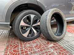 比亚迪宋Plusdmi用车一年,一个轮胎被扎4个洞,打了四个补丁!就盯着一个轮胎扎,这个轮胎是有罪吗? 被扎后最大的那个洞,已经开始鼓包,还好及时更换新胎,要不然开高速走远路就危险了。佳通225V1这个原厂轮胎确实很一般,希望这次换轮胎后,坚持个几年吧,后面4轮统一换更好点的轮胎。 所以大家轮胎被扎了后还是要经常关注下轮胎是否有异样,如果出现问题及时更换。