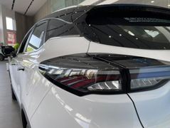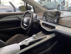 几何C实车到店,前脸非常有新能源车的特色,除了下方有小尺寸的格栅以外,其余均为密闭式处理,两个大灯仿佛动物的眼睛,呈前窄后宽的走势,后面还有眼角式的仿生设计,看起来颇有辨识度。其远近光灯配备的是LED光源,标配了自动大灯、大灯高度调节、大灯延时关闭功能。车身看起来还是比较有几何特点的,腰线采用了贯穿式设计,位于隐藏式门把手上方,紧贴着腰线的下方还有两条比较硬朗的折线设计,看起来非常有立体感,车尾的设计比较个性,尾窗采用了有点椭圆形的构造,在车灯中间做了适当的凸起,点亮以后还是比较有视觉效果的。内饰方面,这款车的中控在基础的T字形结构上做了变形,中控屏下方的空调出风口左侧窄、右侧宽,档把位置也有多层次设计,看起来很有立体效果。档把采用了旋钮式设计,加上悬浮式的中控屏,看起来很有科技感。方向盘为平底式设计,其他位置比较简洁,中控台和门板用了较多的软性材质覆盖,看起来很有档次感。