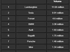 近日外国网站,针对532款车型以及71个品牌,做了最受欢迎的调研。其中包括特斯拉的四款车型,丰田的supra,奥迪R8,宝马i8等。在榜单中,特斯拉竟有4款车型排名在前十,虽然销量不高,但是关注度在国外还是很高的。不过国内,因为一些列的维权事件,刹车失灵事件,被强制召回事件,近几个月特斯拉在国内的销量有所下滑,但还是在国内市场销量前十的行列当中。作为科技产品,我们认为特斯拉还是可以的,但作为汽车来说,对于广大消费者,还是有敷衍的成分在其中。 最受欢迎的品牌中,兰博基尼排名第一,特斯拉高居第二,法拉利,宝马,奥迪次之。看来在目前阶段,外国友人可能会更喜欢或更加关注特斯拉,所以希望特斯拉能够真正认真对待中国消费者,也希望自主品牌有一天,也能在榜中。