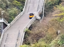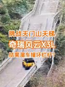惊魂一刻!奇瑞风云X3L天门山天梯溜车撞栏。