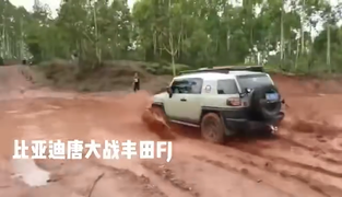比亚迪唐DM大战丰田FJ酷路泽过烂泥潭,大家看看谁更霸气!