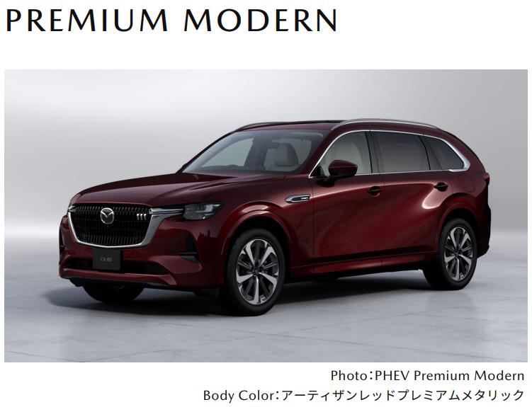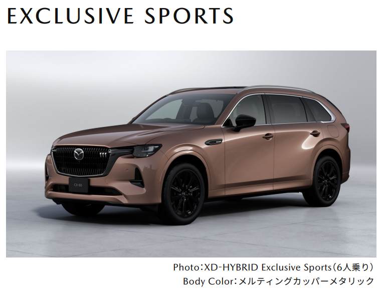 CX-80为马自达新一代CX-两位数字的纵置后驱平台(可选2WD或4WD)三排座中大型SUV,轴距3120mm,有6座或7座可选。 马自达 CX-80 中网右侧的三条短小镀铬饰条为日规版车型的专属标识,提升前脸精致感与辨识度。 SPORT运动版中网签名翼为黑色镀铬,其它版本为银色镀铬。SPORT版轮毂为20寸金属黑,Modern版为20寸金属灰切削,Exclusive Mode和L Package为20寸金属银,S Package为18寸金属灰,XD为18寸金属银。 此外,Sport和Modern版保险杠前唇、轮拱和侧裙与车身同色,电动折叠外后视镜为黑色;其它版本保险杠前唇、轮拱和侧裙为黑色,外后视镜与车身同色。 车身颜色方面,CX-80提供熔融铜金属漆、工匠红高级金属漆、魂动红水晶金属漆、铂金银高级金属漆、流星白高级金属漆、珍珠白云母漆、深水晶蓝云母漆和纯黑云母漆共8种车身颜色,其中工匠红是一款能展现出深邃与质感的红色车漆,为2022年12月发布的马自达6 20周年纪念款上首次采用的车身颜色。#马自达CX80 #CX80 #马自达 #工匠红 #魂动红