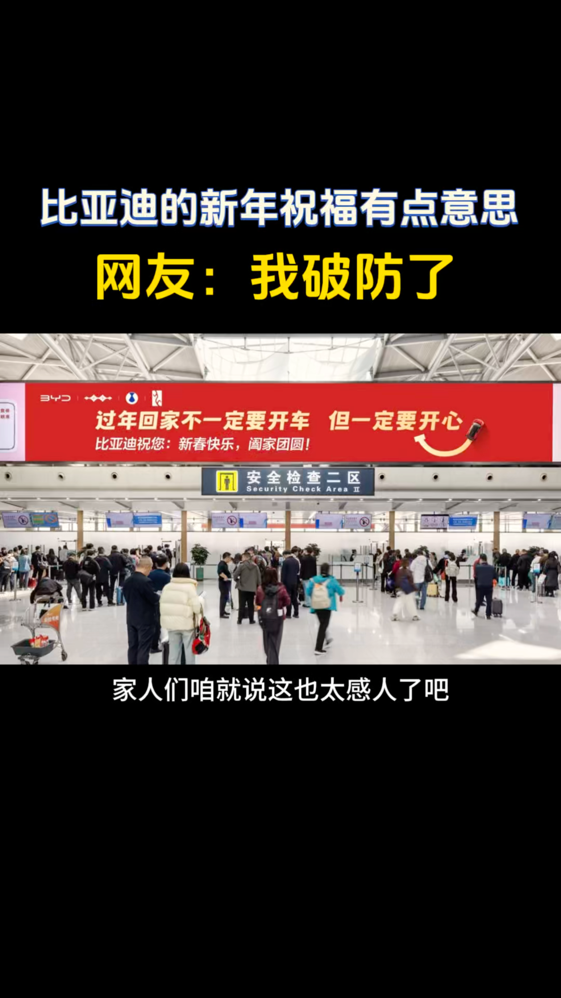 谁懂啊!比亚迪春节在机场大屏说的这句话,直接破防了