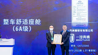 权威认证 一汽奔腾B70荣膺首款整车舒适座舱(6A级)认证轿车