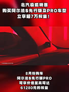 北汽极狐特惠:购买阿尔法S先行版及PRO车型立享超7万权益!