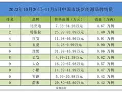 新能源汽车销量周排行榜,理想汽车未破万,小鹏第二,问界起飞!