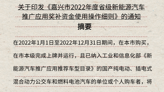 政策追踪 | 浙江嘉兴:购新能源汽车可享最高不超过购车价格50%的补贴