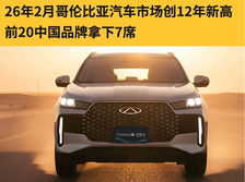 26年2月哥伦比亚汽车市场创12年新高,前20榜单中国品牌拿下7席