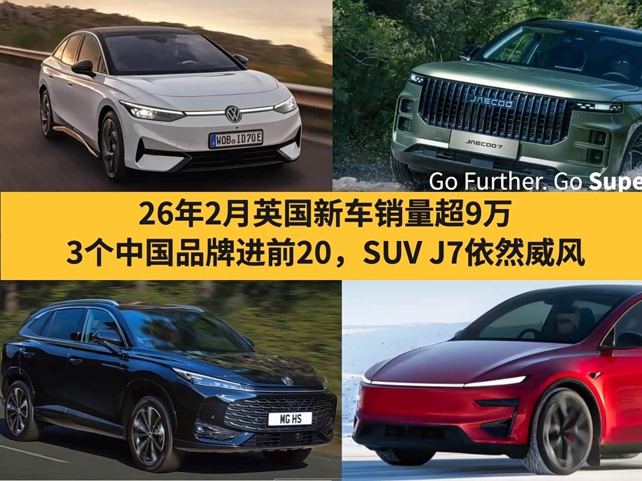 26年2月英国新车销量超9万,3个中国品牌进前20,SUV J7依然威风