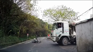 摩托车小伙丁字路口不减速,被闯出的搅拌车吓翻
