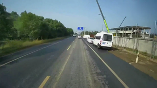 五菱司机躲在大货后面掉头,把直行车吓得够呛