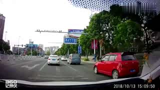 长安等红灯溜车,另外一老司机横穿三车道转弯