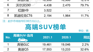 2021年1月豪华车销量排名出炉!奔驰E级称霸轿车榜单,奔驰GLC称霸SUV榜单,具体排名如下(注:数据来自乘联会,这里的豪华车指的是市场指导价30万元以上车型)