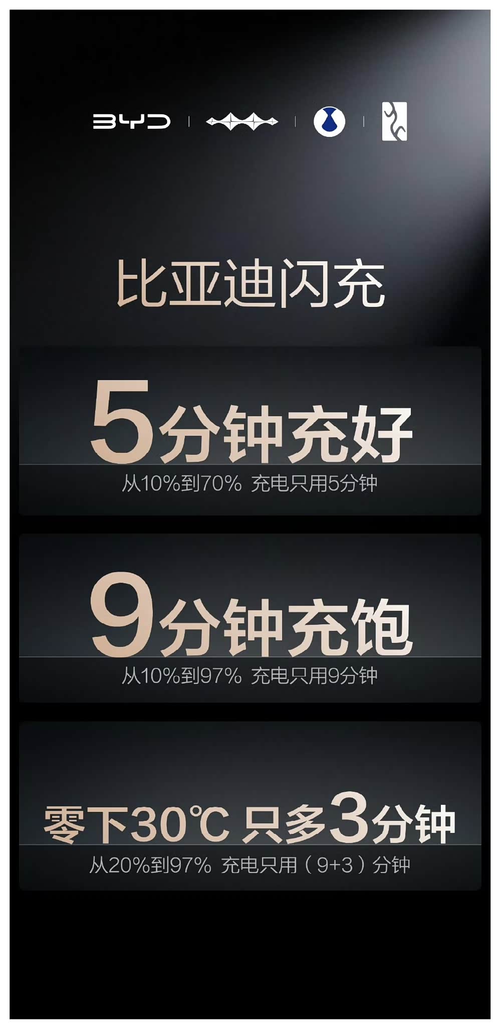别再看续航1000公里了,那都是老黄历。电动车真正的痛点从来不是跑多远,而是节假日敢不敢上高速,冬天敢不敢开暖风。 比亚迪这次发布会,我全程看完,没怎么吹参数但很震撼,可以说全是硬货。第一代刀片电池140Wh/kg,第二代直接杀到190Wh/kg,涨了30%以上。更夸张的是行业内公认闪充和能量密度不可兼得,比亚迪反着来——闪充的同时能量密度反而比一代高了5%。 充电速度也是不讲武德,常温10%到97%,9分钟。零下30度,20%到97%,11分40秒。官方称“5分好,9分饱,3分寒”。以前电动车在东北是“电动爹”,现在“电车不过山海关”真要成为历史了。 充电桩也重新设计了。传统枪又沉又脏,比亚迪搞了悬吊式,2公斤轻量化枪线,单手跟拿吹风机差不多。更狠的是不挑桩,现有480万个桩插上也能比之前快30%-50%。 年底要建2万座闪充站,第一批车主送一年免费充电。当王传福说出“充电和加油一样快”的时候,我就知道,北方用户的钱包怕是捂不住了。硬核闪充技术树立行业新标杆,这次是真把电动化上半场收了官。
