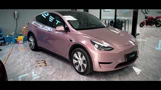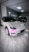 Model Y外观选择冰梅粉改色膜再搭配白色内饰