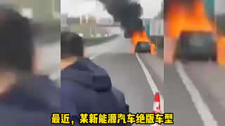 某新能源汽车又自燃了,高速应急道上,浓烟滚滚
