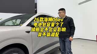 26款海狮06ev 电池包容量变少,会影响续航吗?算不算减配?