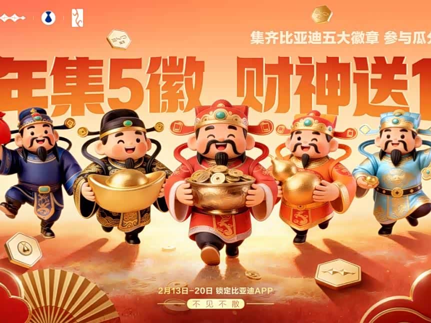 比亚迪春节宠粉1亿积分大派送,集齐五徽就能瓜分