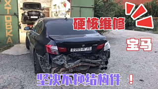 俄国人修车真的狠,宝马5系后部被追尾致严重变形,愣是修好了