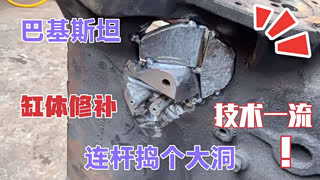 发动机缸体被连杆捣个大洞,看巴铁手艺人如何修复,这技术绝了