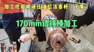 小伙维修挖掘机活塞杆,170MM镀铬棒顺利加工成活塞杆