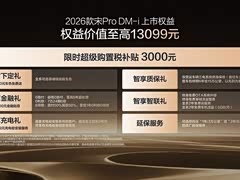 比亚迪宋Pro DM-i 220km上市,限时11.98万起 今晚,2026款宋Pro DM-i上新220km长续航版本,限时11.98万起;同时全系限时超级优享价9.98-12.78万元。 这次大电池可以说终于来了,纯电续航来到220km,综合续航来到1600km,可以说基本一周一充,没什么问题,日常可以当“纯电车”来用。 而当需要更长距离的远行,这个就是第五代DM技术展现实力的时候了,低至3.2L的百公里亏电油耗也是给了我们十足的信心与底气。 值得一提的是,这次有一个智能儿童安全座椅,是支持车机互联与语音控制的,可实现上车自动旋转迎宾,方便孩子的入座下车。 智能辅助驾驶部分,2026款宋Pro DM-i 220KM版搭载的“天神之眼C-辅助驾驶系统”,日常的高快领航,没有问题,多种车位的泊车入位也支持,方便且省心。 这一次220km长续航版本的到来,是对2026款宋Pro产品线的一次有力补充,期待未来在销量上的大幅正向反馈!