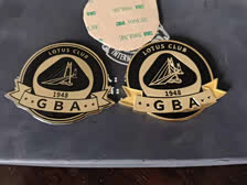 路特斯大湾区车友会会标实物对比。因为出去浪耽误了,样品在桌子上放了快一个月了。LOGO设计舍弃了之前跟莲花标过于近似的方案以避免知识产权纠纷。GBA为theGreaterBayArea缩写。大桥为港珠澳大桥标志剪影,既寓意大湾区核心地标,又寓意车友会是一座桥梁链接品牌和用户,还寓意各位车友之间的桥梁。中间1948为每人独立的编号(前期128个编号已经被选择,尤其是三连的),可以根据大家的需求选择一