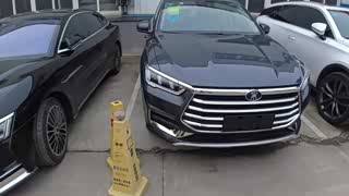黑外观红内饰的顶配比亚迪汉EV旗舰提车