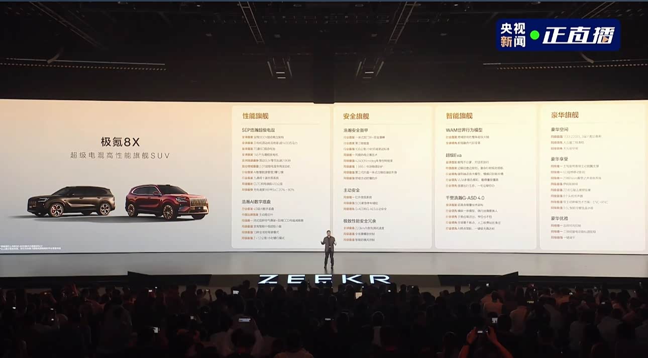 极氪8X正式开启预售:起售价37.68万元,千匹马力重塑“新公路之王” 2026年3月16日,极氪旗舰SUV极氪8X在技术发布会上正式亮相并开启预售。新车共推出四款车型,预售价格区间为37.68万元至51.68万元,其中Max版预售价为37.68万元,Ultra版为39.68万元,Ultra+版为44.68万元,顶配曜影版预售价达51.68万元。作为“新公路之王”,极氪8X以极致性能与豪华配置,直接对标宝马X5M及保时捷Cayenne等传统燃油性能车。 性能方面,极氪8X搭载行业首个三电机兆瓦级电驱系统,综合功率高达1030kW(约1400匹马力),零百加速仅需2.96秒,即便在馈电状态下也能达到3.16秒,稳居混动SUV“2秒俱乐部。续航与补能同样领先,CLTC综合续航里程达1416公里,纯电续航410公里;基于900V 6C超快充技术,常温下电量从20%充至80%仅需9分钟,彻底消除里程焦虑。 座舱内,极氪8X配备宾利同源Naim音响、压缩机冷暖箱及二排伊姆斯躺椅,尽显旗舰奢华。随着极氪8X以37.68万元的惊喜起售价入局,高端新能源SUV市场竞争格局将迎来全新变数。
